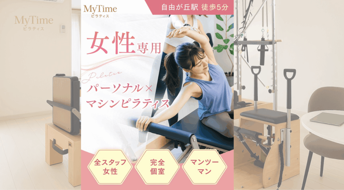 レッスンプログラムのご案内 🧘♀️ MyTime Pilates では、 「静かに、自分の身体と向き合う時間」をお過ごしいただけるよう、 女性専用・完全個室の空間で、マンツーマンのパーソナルレッスンをご提供しています◎ お一人おひとりの姿勢・体力・ライフスタイルに合わせて、 AI姿勢分析と専任トレーナーの経験を組み合わせたオーダーメイドのプログラムを組み立てていきます。 🌱 はじめての方へ|体験パーソナルレッスン 「ピラティスが初めて」「運動が久しぶりで不安…」という方は、 まずは体験パーソナルレッスンからのスタートがおすすめです◎ 体験レッスンでできること カウンセリング:お悩み(肩こり・…